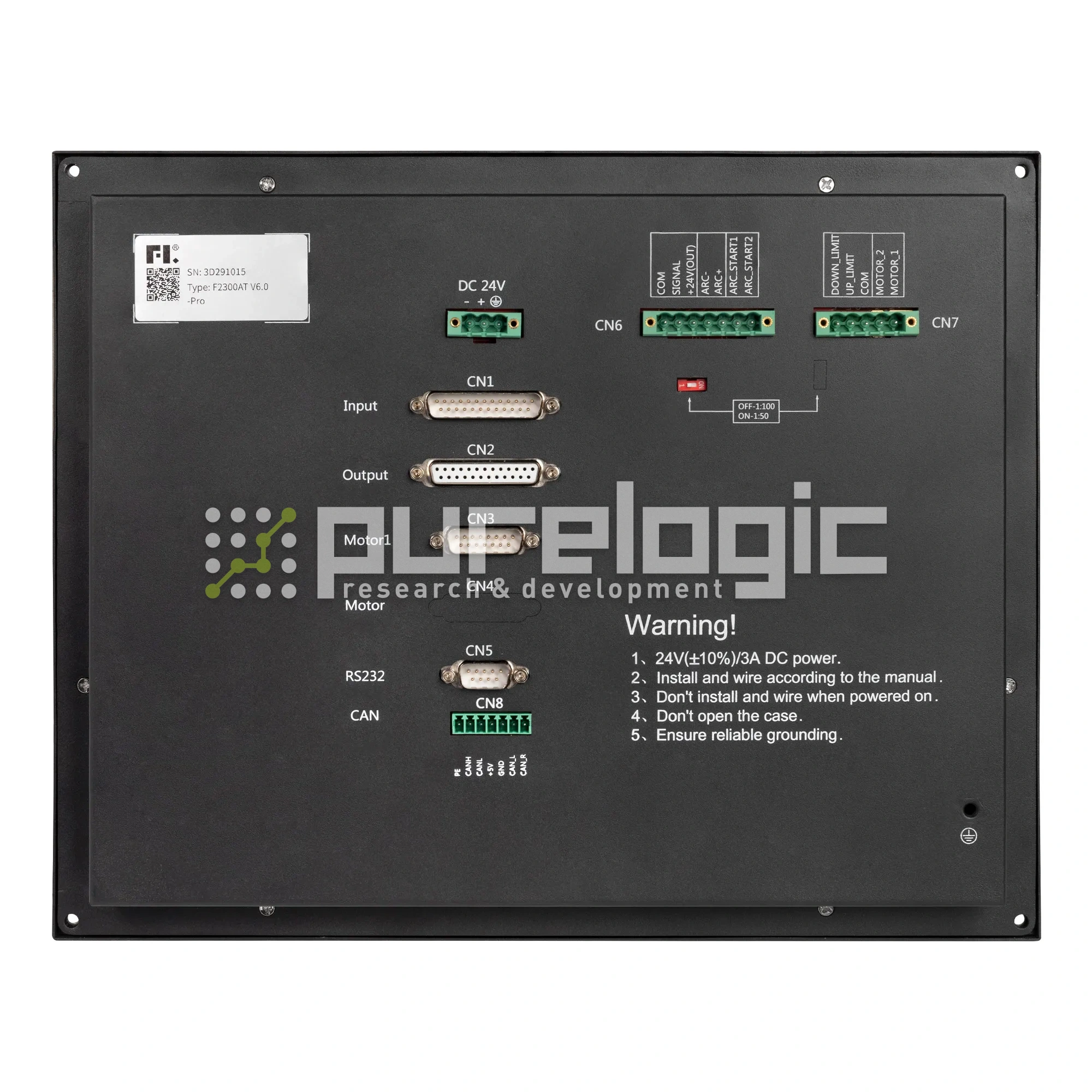 Автономный контроллер для станка с ЧПУ плазменной или газовой резки. Контроль оборудования осуществляется с помощью клавиатуры и дисплея 10.4''. 16 входов, 16 выходов. Функция автоматической регулировки высоты реза с помощью THC, контроллер ТНС встроен. CAN интерфейс. Процессор на базе ARM9+ DSP с частотой 200 кГц. Постоянная память - 256Мб. Объем оперативной памяти — 64Мб. Предустановлена библиотека параметров резки.