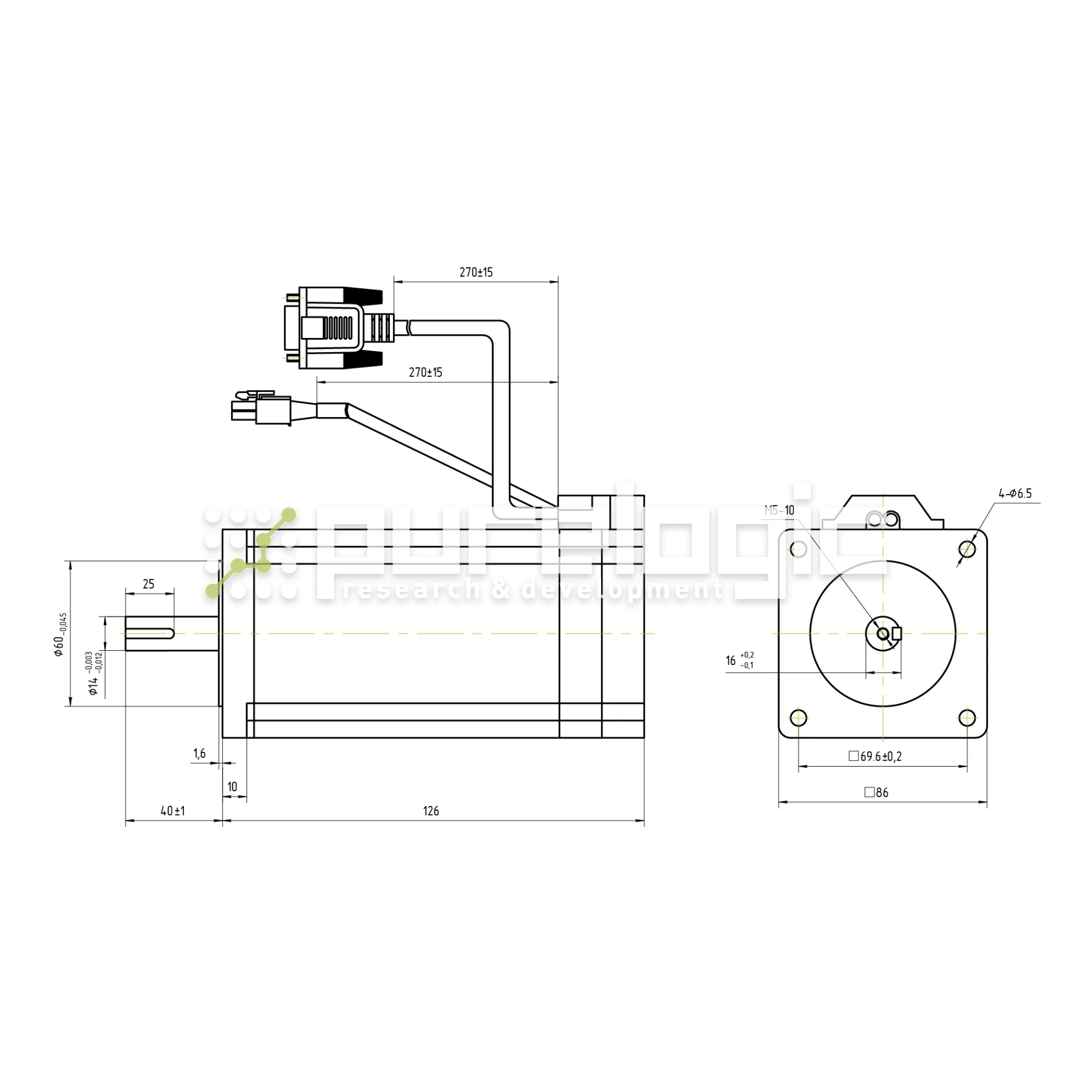 Сервошаговый двигатель с 2 фазами (сопротивление фазы 0.63Ω±15% при 20°) имеет момент удержания 8Н*м и угловой шаг 1.8°±5%. Рабочий ток двигателя - 6А. Прочность диэлектрика шагового серводвигателя составляет 500VAC/1 мин. Оснащен энкодером с разрешением 1000PPR. Электродвигатель совместим с драйверами PLDS880 и PLD1090S. Для этого необходимо подключить драйвер к ПК, запустить PLD Configurator и выбрать установочный профиль данного двигателя.