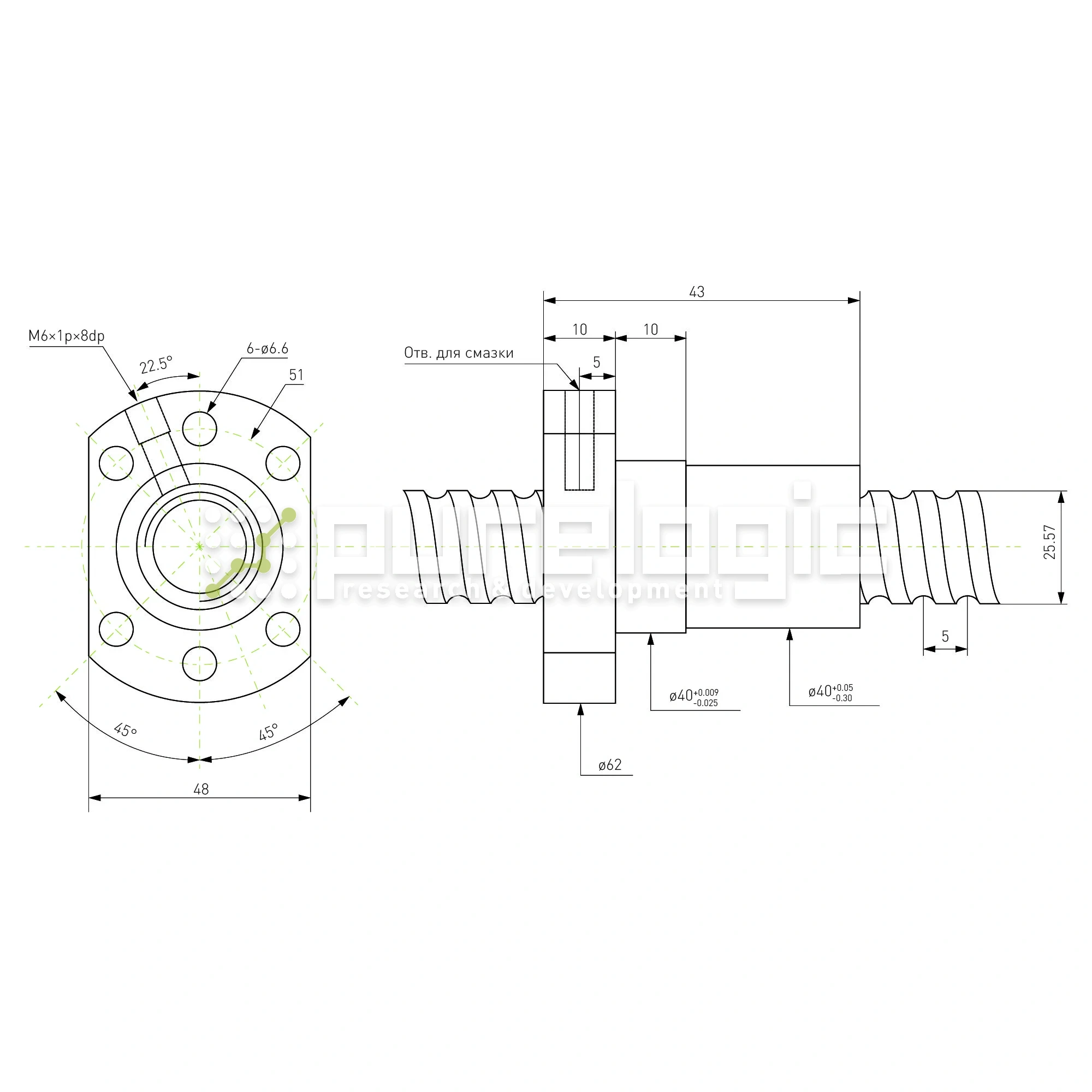 Гайка ШВП Hiwin R25-5K4-FSCNW (BD=3.175)