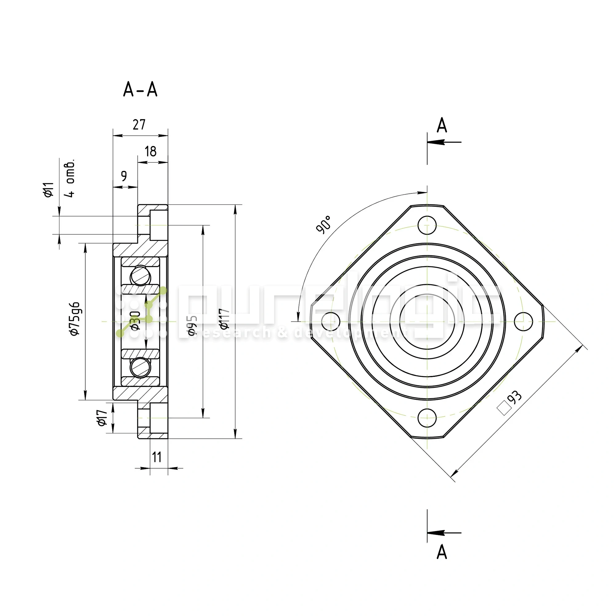 Опора ШВП Hiwin FF30-C5