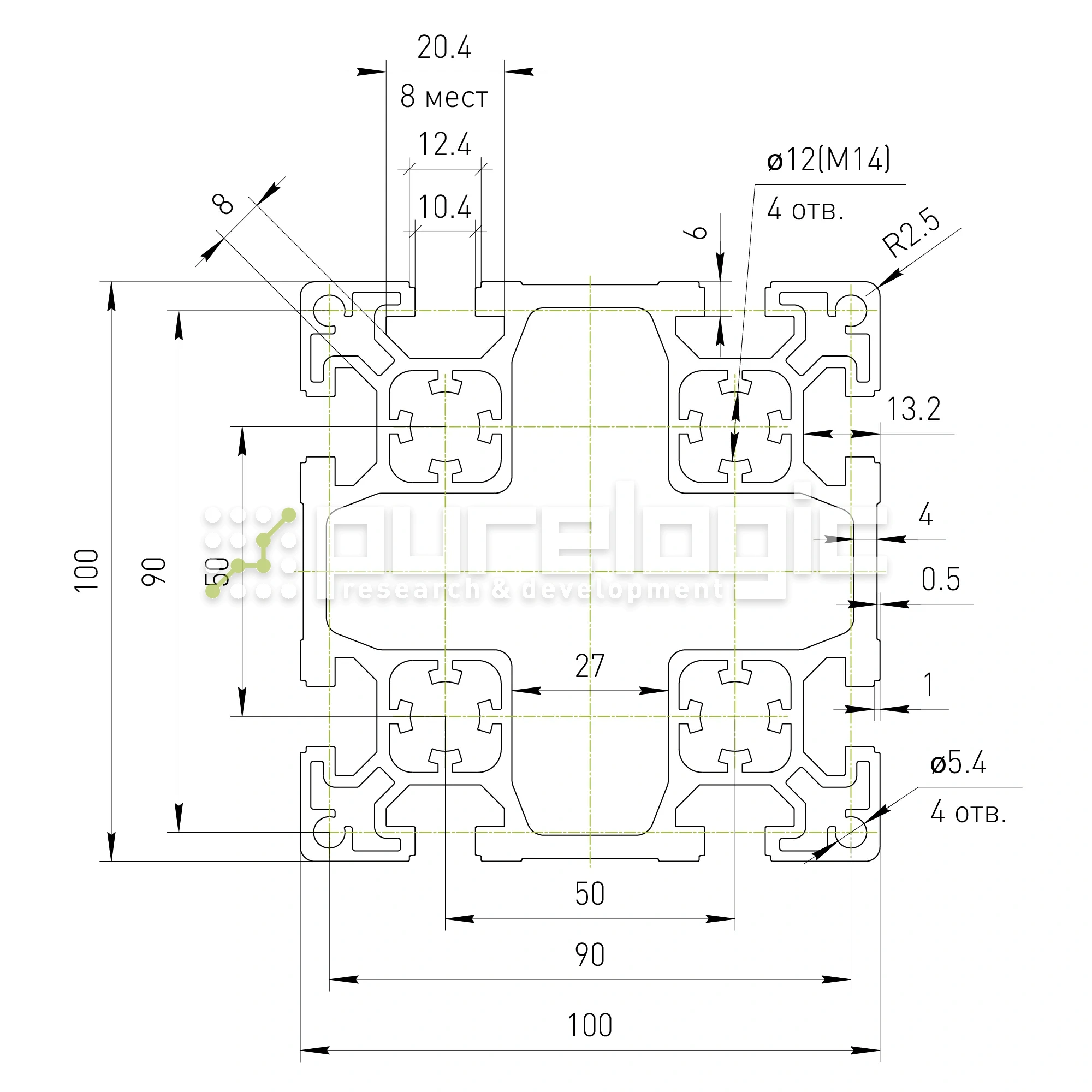 Профиль алюминиевый HXB100100E-10