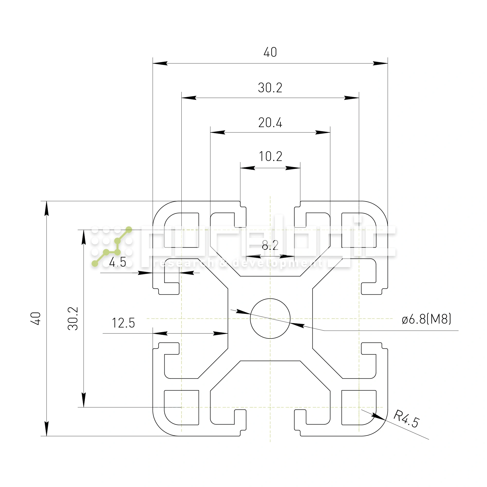 Профиль алюминиевый HXB4040E-8