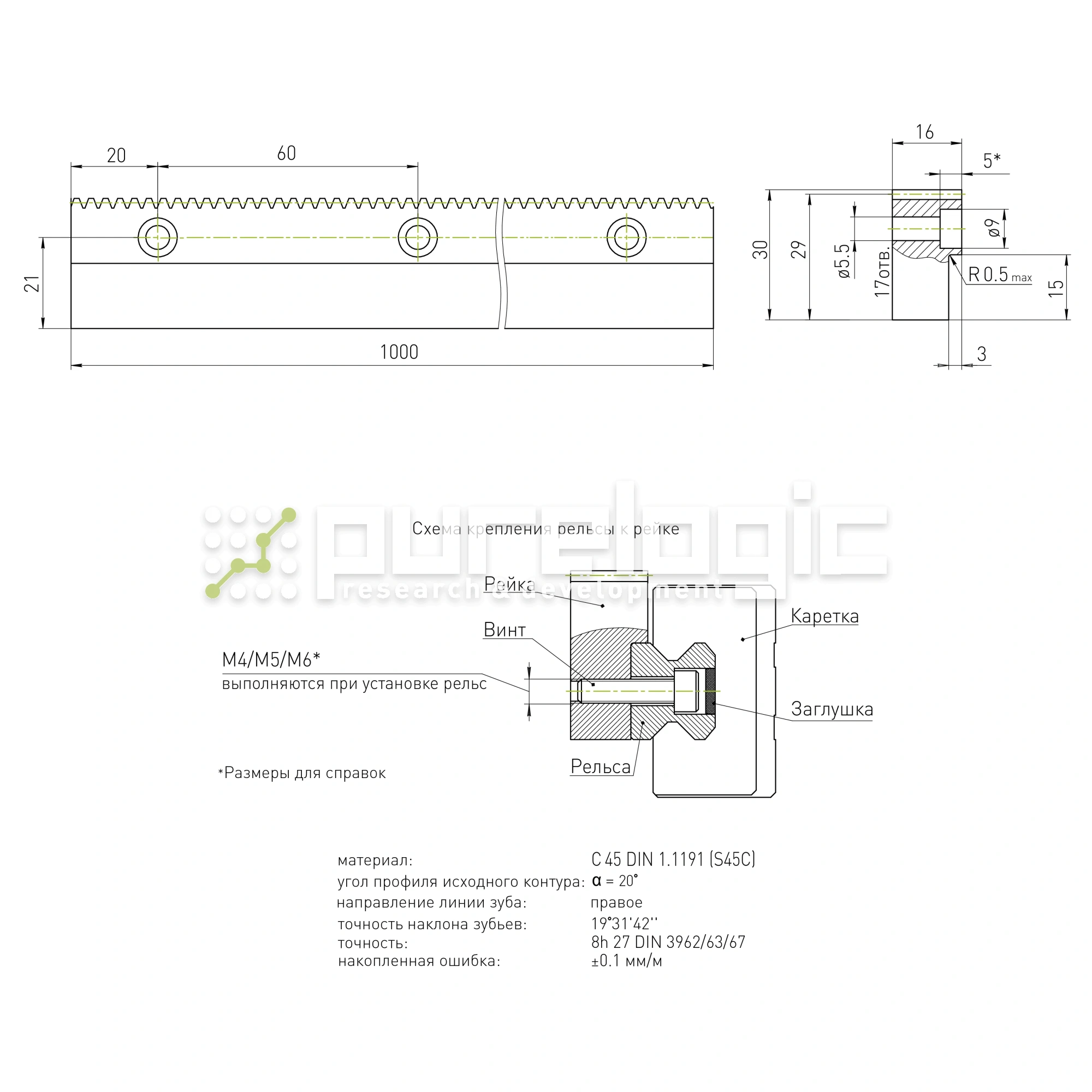 Рейка косозубая RH1BG-15
