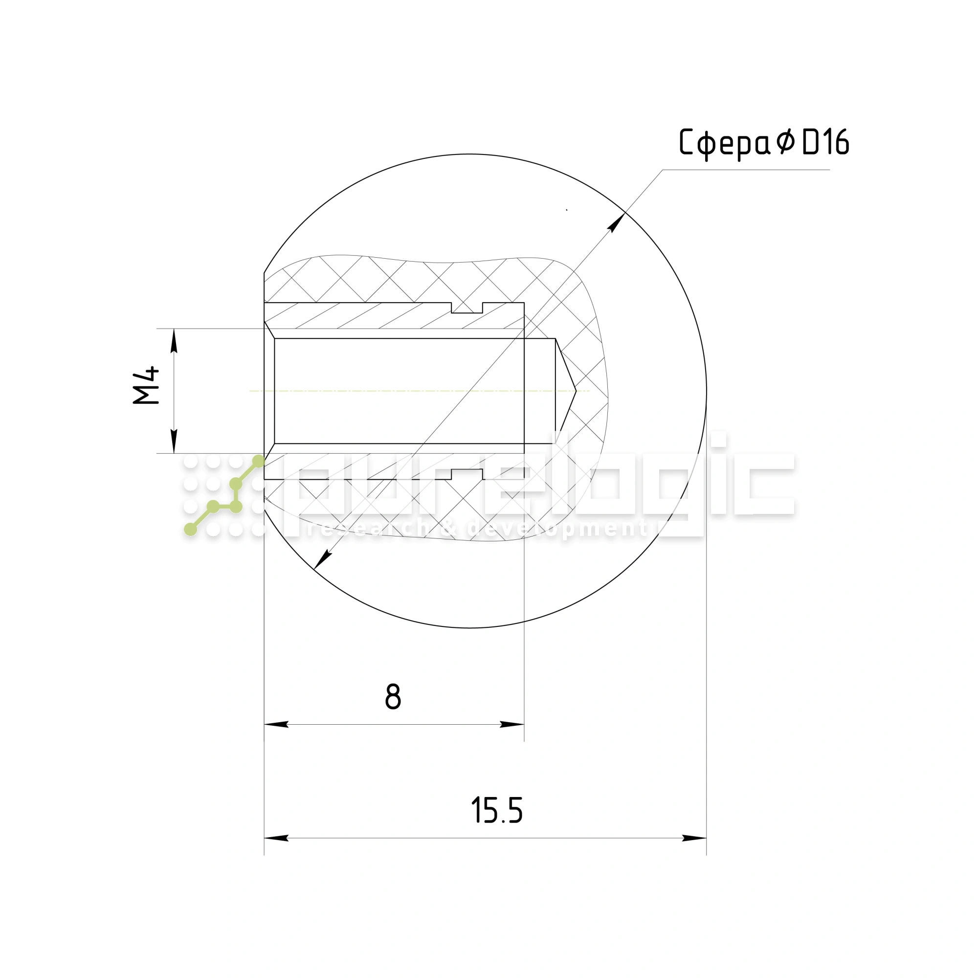 Ручка круглая 100118-16*M4