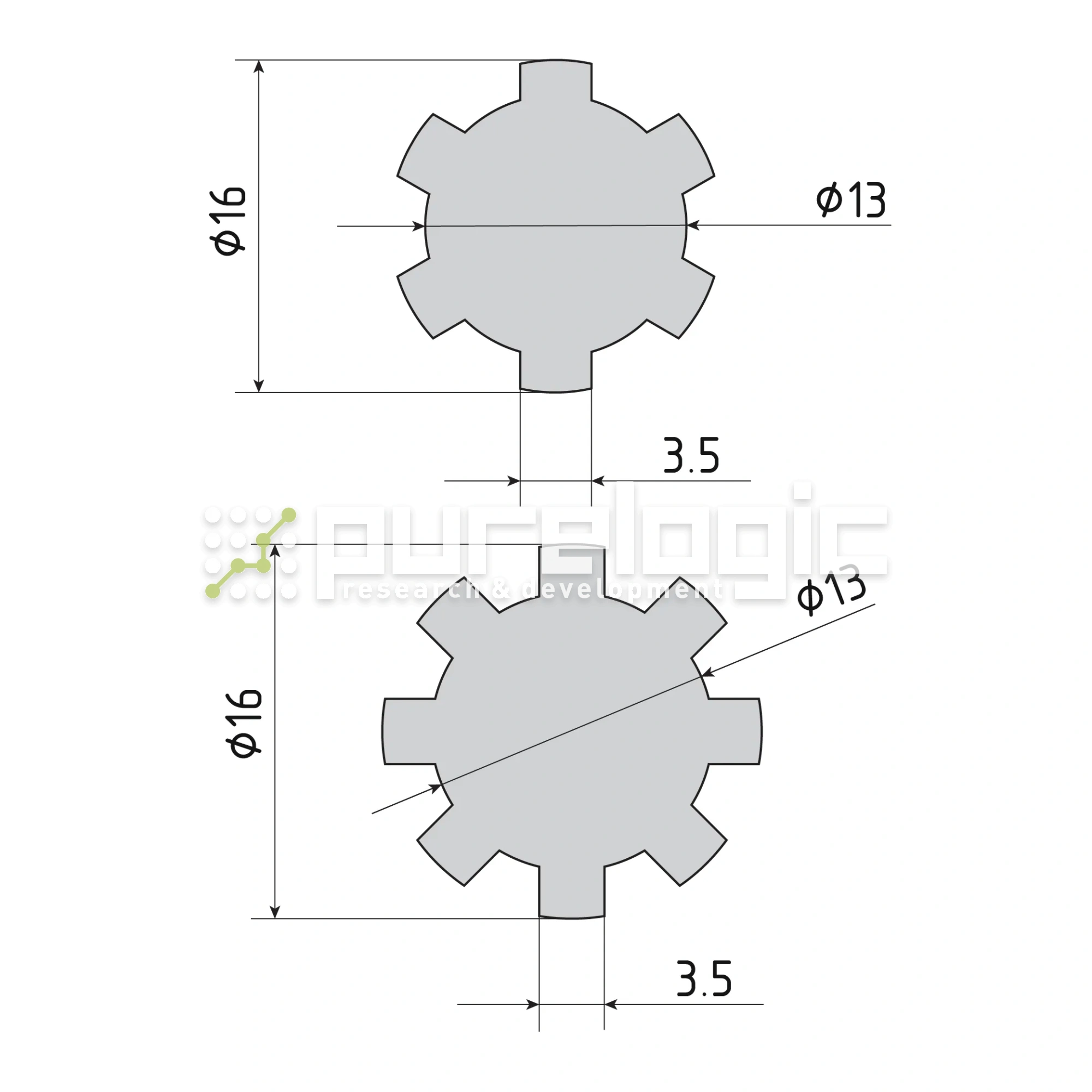 Шлицевой вал SS-13x16