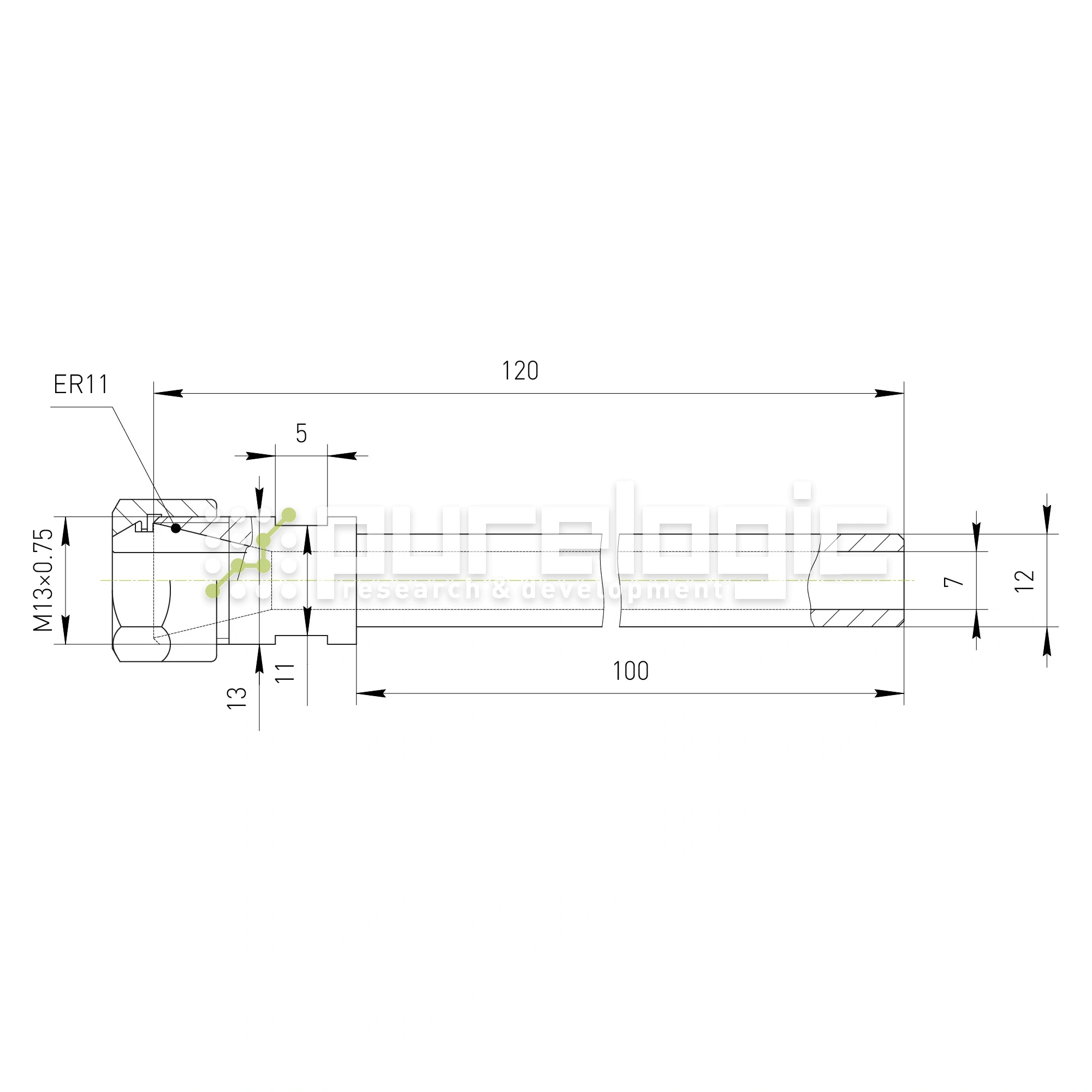 Удлинитель цангового патрона PLC12-ER11M-100L