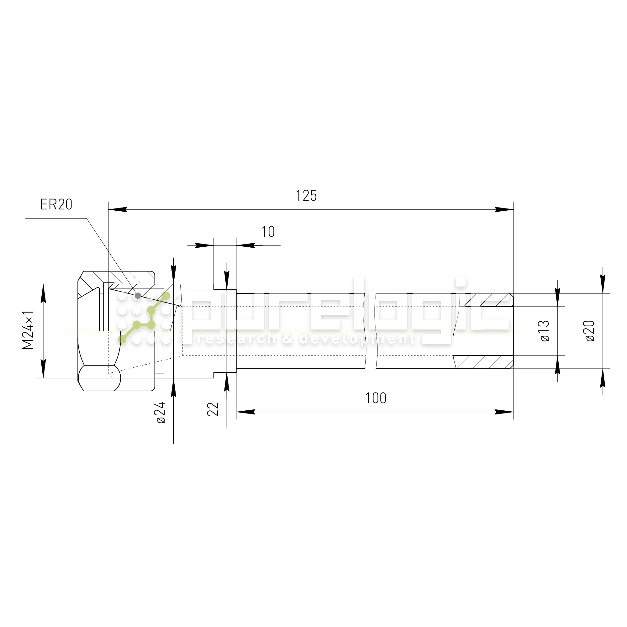 Удлинитель цангового патрона PLC20-ER20A-100L
